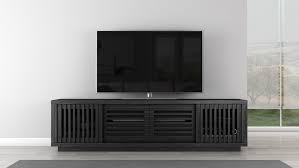 Features- American white oak case with a sultry ebony finish and 3 solid cherry wood slatted sliding doors that conceal 3 equipment compartments