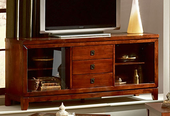 The Davenport TV Stand offers a beautiful cherry finish with slate inlay and comes together as the perfect blend of beauty and functionality. There is plenty of room to store all your TV components with two glass doors and three drawers.