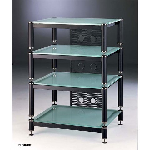 VTI MANUFACTURING BLG404BF 4 BLACK CAPSPIKE BLACK POLES 4 FROSTED GLASS SHELVES AV STAND
